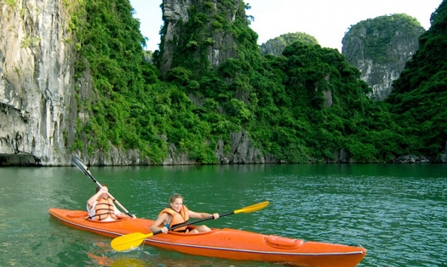 Explore hidden lagoons and limestone karsts by bamboo boat or kayak