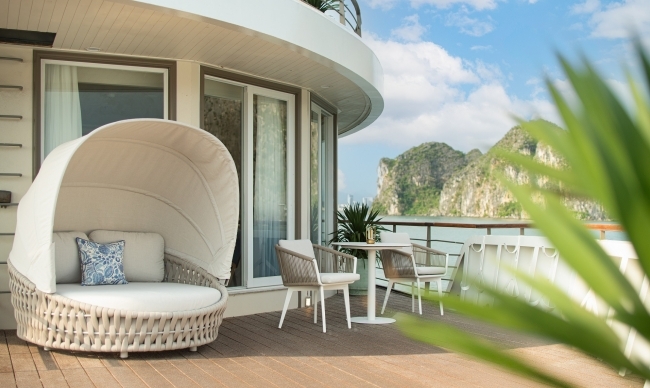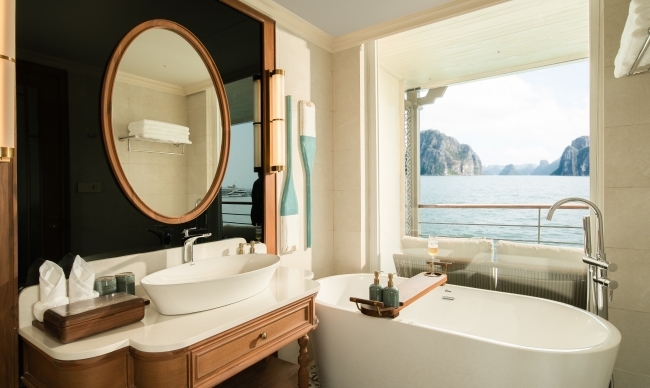 - A luxury, wellness-inclusive cruise sailing through Halong Bay and Lan Ha Bay