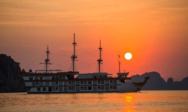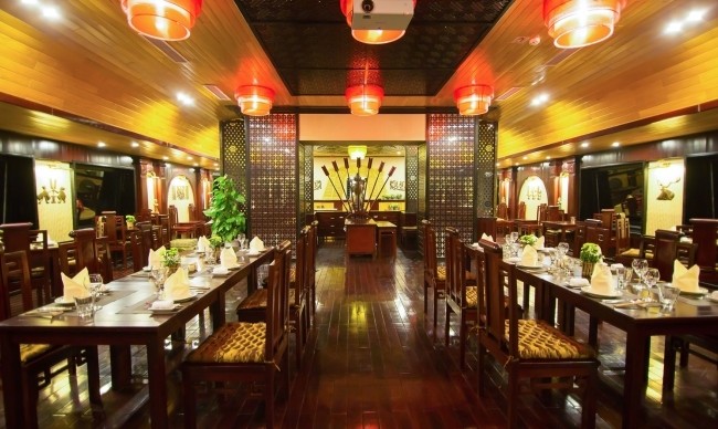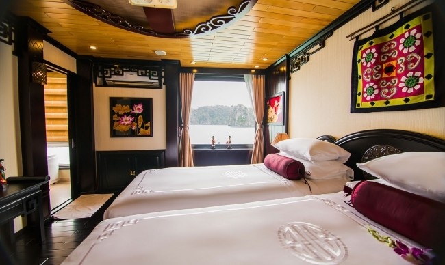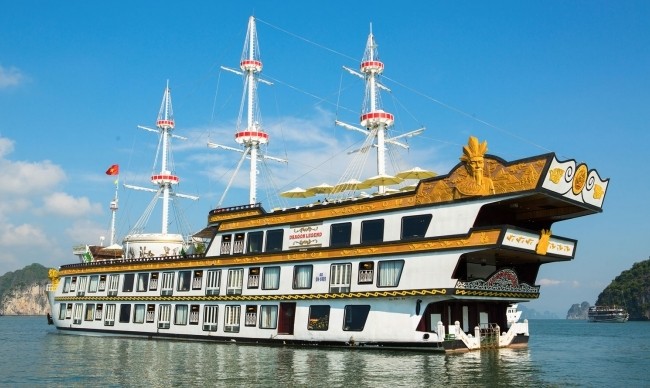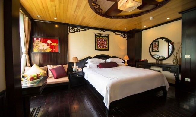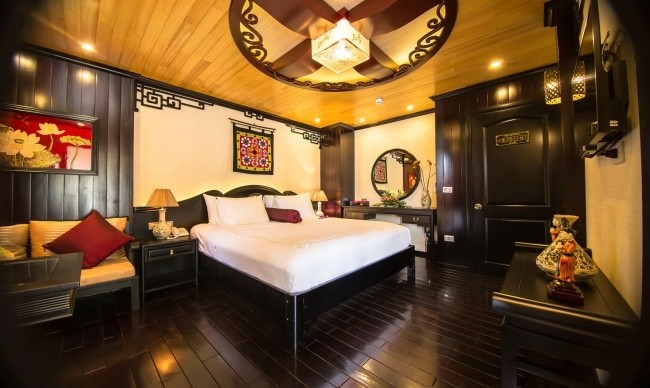 Launched in 2014, Dragon Legend Cruise is the newest member of Indochina Junk fleet with high end product line. Dragon Legend is built the iron and qualified steels, features 24 cabins and 4 decks which are differentiate with excellent design, modern facilities, international standard, high safely level, a nice looking ship in the Bay, along with both inside and outside equipped with impressive open-air restaurants, sundeck area, spa, dramatic public spaces and other entertainment options. The four cabins are traditionally decorated as an art of work with modern amenities, private bathroom with big sea windows and Jacuzzi will bring you comfort, relax in an amazing cruise experience.