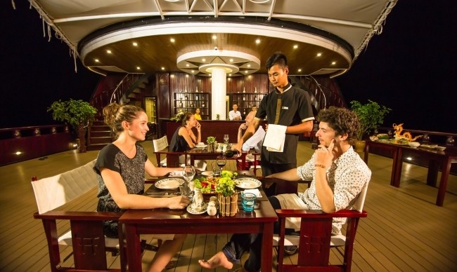 After a busy day of activities, you will enjoy BBQ along with your friends or family with a wide range of food selection on a romantic beach in the fresh atmosphere. In addition, you can take part in many exciting activities on board as communicating with the staffs, watching movies or listening to music or fishing.This BBQ on the beach is offered and included in 3 day 2 night cruise on our luxury Dragon Legend, if the weather is fine enough to make it. Guess that you would be regretted if you missed this opportunity.
