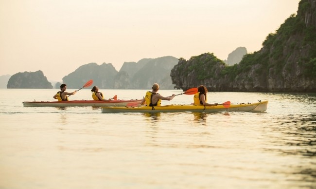 Take slight exercises and enjoy the tranquil fresh air in the morning will help you refresh yourself and relax before joining in a lot of interesting activities awaiting you ahead. This is also the chance for you to admire the stunning sunrise scenery in Halong Bay.