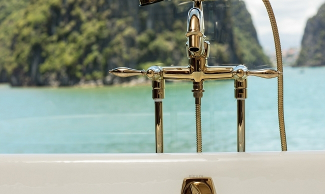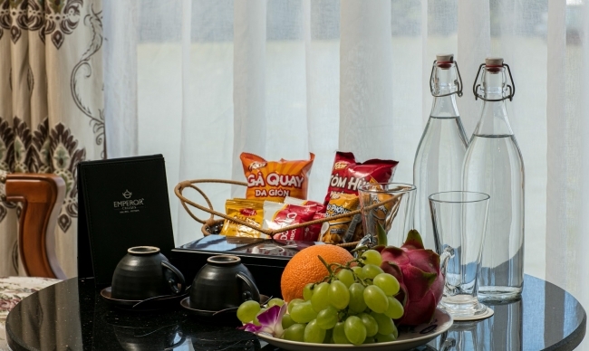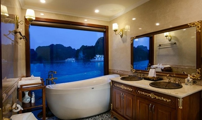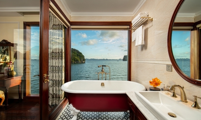 Inspired by the last Emperor Bao Dai and his royal villas and palaces in all parts of Vietnam, all cabins on Emperor Cruises are named after the locations related to the opulent lifestyle of Emperor Bao Dai and his empire. And for each suite, including the King and Queen suites, features interesting stories from his life. All 8 suites will be decorated in warm colors with leather headboards, plush sofas or chairs and drapes, new lighting features, window coverings, fancy carpeting, modern works of art, stylish bed cushions, and throw pillows inspired by original designs dating from the 1930s. Emperor Cruises are all-suite cruises with cabins measuring from 28 to 70 square metres, large enough to be able to add an extra bed. All the suites are spacious with their own private balcony affording spectacular ocean views. The bathrooms are uniquely designed and fit for royalty with a tub or a walk-in shower. The ocean can be viewed from any corner of the bathroom. A spacious sitting area provides room to stretch out and watch television, read a book or simply enjoy the sunset or awake each morning to see new vistas.