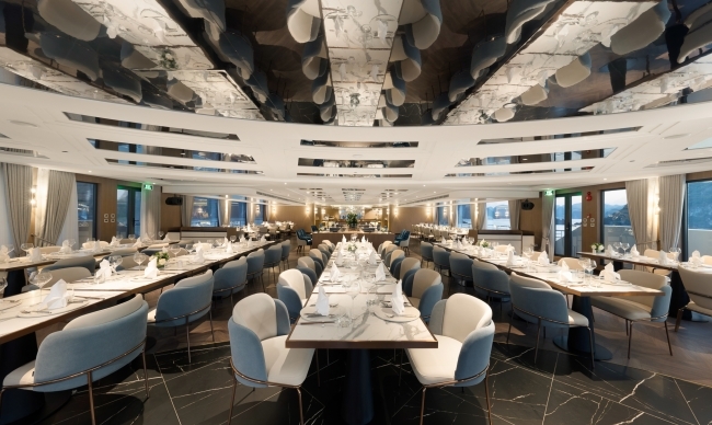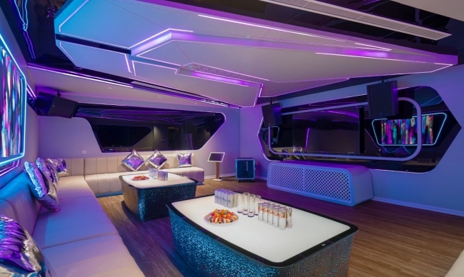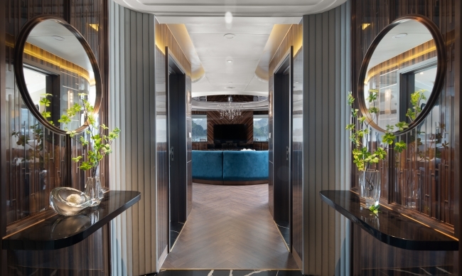 - An extensive selection of cutting-edge facilities onboard, including a salt water infinity pool, a golf simulator impact screen, a gym and yoga studio, a conference room, a wine & cigar lounge, a mini library and reading area; a kids’ club, etc.