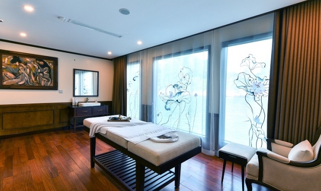 Named after the national flower of Vietnam and the purity of the white lotus, the spa has two private treatment rooms on the Panorama Deck.The White Lotus Spa services include everything from herbal therapy facials and body treatments, to an extensive range of massage treatments.Spa treatments are available throughout the day and evening, by appointment. In these two specially designed spa rooms, our highly trained therapists offer a full range of holistic, restorative and energizing treatments. The full spa menu has been placed in each suite for the convenience of our guests.