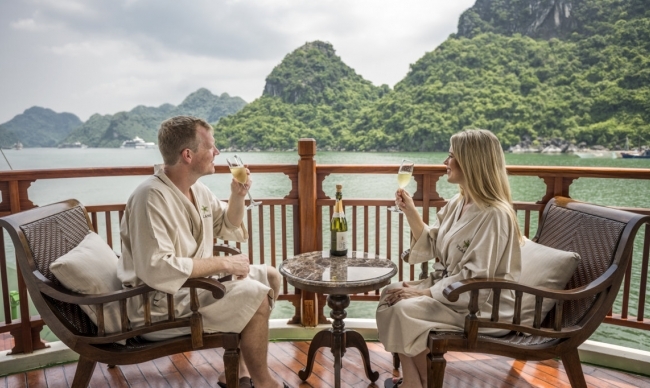 Ylang Cruise is the latest member of Heritage Line’s ship collection in Lan Ha Bay following its sister - Ginger Cruise. This brand new boat features a splendid blend of Asian-Vietnamese design with French-Colonial accents. With only 10 suites, each with a delicate floral leitmotif inspired by local poetry and related to the four seasons of the year, Ylang Cruise is a perfect choice for those who look for a small private boat. Especially, Ylang Cruise operates only the 3 day 2 night itinerary in Lan Ha Bay which means travelers can enjoy maximum time in the boat. All this creates an inimitable sense of bliss and an exceptional abode at sea.
