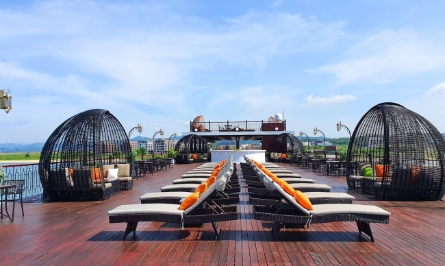 Indochine Premium Cruise boasts the largest twin sundeck in the bay. The first 250m2 infinity sundeck is best for check-in photos or sunbathing, and the second 1100m2 sundeck is ideal for Gala parties, dancing stage, performance stage or even a fashion show.