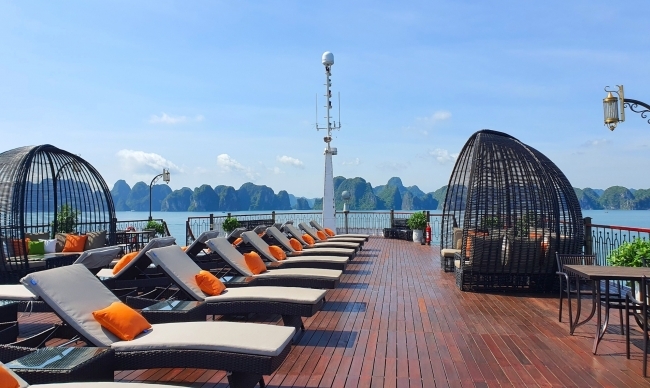 - Indochine Premium Cruise is the largest total area and sundeck in Halong Bay