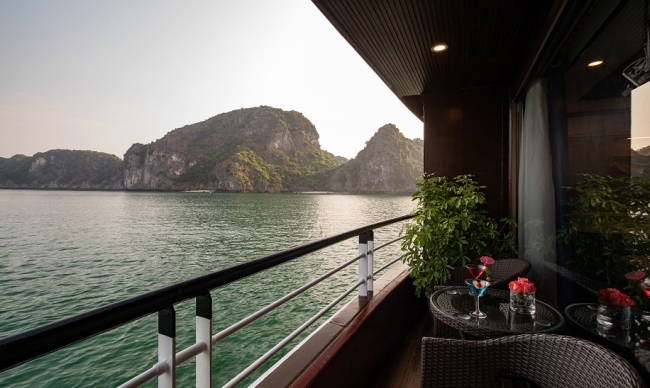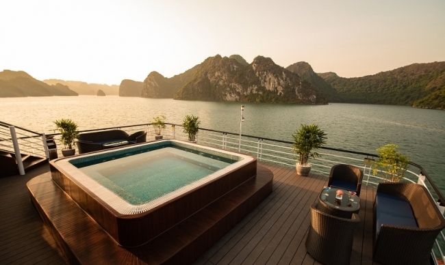 Newly joined to the luxury segment of fleets in Halong Bay in 2019, Doris Cruise promisingly aims to create a leisure overnight trip amid the Natural Heritage Site that allows every guest can fully enjoy their time in Halong - Lan Ha Bay rather than trying to follow party crowds in main stops here. Not only offering a private balcony in all cabin types, Doris also accommodates an outdoor pool on the third floor so that you can admire the natural beauty almost any time onboard. The charm of a unique and original Lan Ha Bay will bring to you unforgettable experiences along with Doris Cruise.