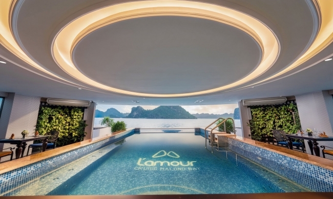 Located at the rear of L’amour, the swimming pool is designed with an infinity edge, giving the impression that the water mixes smoothly with the surrounding area, with no distinct limits. Natural mineral water provides extra health advantages to guests by relaxing the body and recharging energy, making it suited for all ages. Furthermore, the pool is available year-round, so passengers can enjoy a refreshing dip regardless of the weather.