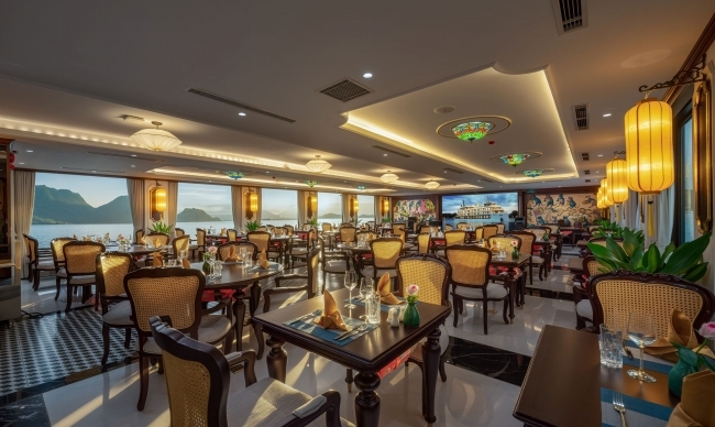 The Hoa Lu Restaurant, located on the first floor of L’amour, is named after the ancient capital of Hoa Lu in Ninh Binh, which is a shining symbol of Vietnam's heroic past. The restaurant provides a warm and friendly ambiance with sophisticated yet traditional Vietnamese design. The menu includes a broad range of dishes carefully prepared by skilled chefs with years of expertise, offering both visually stunning and flavorful dishes.The restaurant is not only proud of its delicious food, but it is also well-known for its professional, responsive, and caring customer service. The staff is devoted to giving guests an unforgettable dining experience amidst Halong Bay.