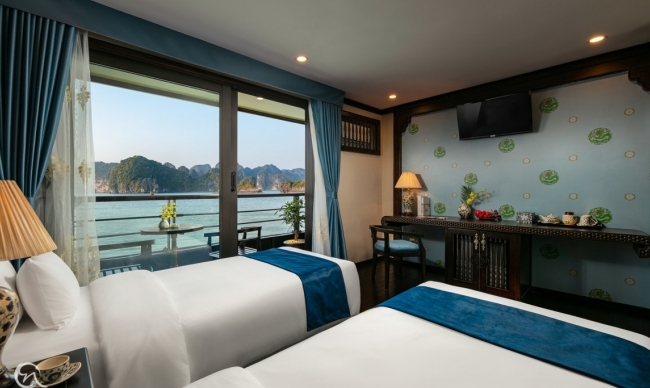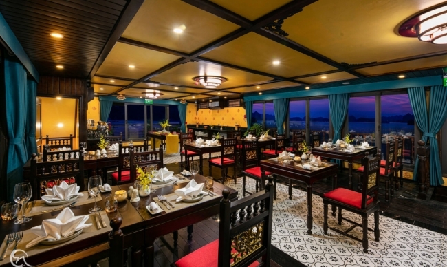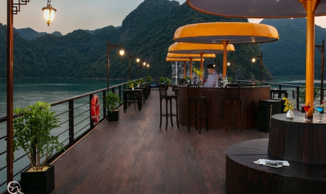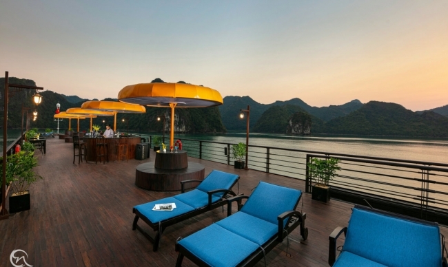 Located on the top floor, Sundeck is the best place to chill out and enjoy while the boat sails through thousands of limestone karst. You will also join the sunset party and the soothing Taichi session in the early morning here. On the lower deck, you are invited to relax in the cool water of an outdoor swimming pool and feast your eyes with magnificent ocean views.