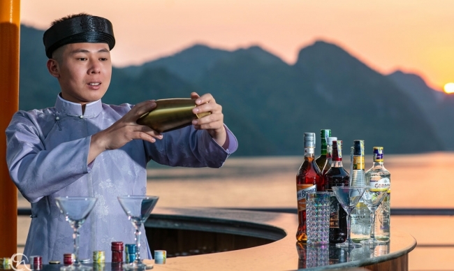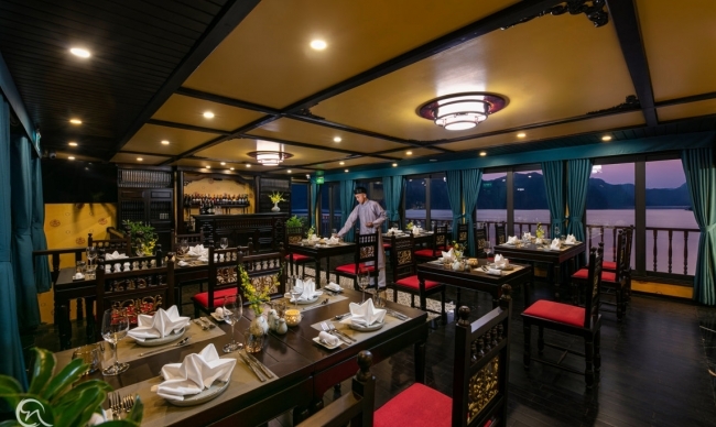 Nostalgia Cruise boasts a spacious and airy restaurant with a capacity of maximum 35 seats. The space is surrounded by floor-to-ceiling glass windows that let you enjoy a panoramic ocean view though day or night time. Here, you will also have a chance to savor traditional Hue & Vietnamese cuisine and fusion in high-class style, all prepared and designed by top chefs in Vietnam.