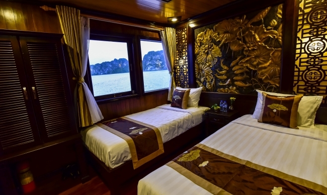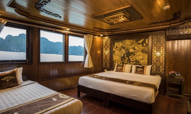 Following the long-standing Halong Bay fishing boat style, Renea Cruise enjoys a traditional vibe presented in detailed features. From the traditionally decorated cabins to the elegant dining room with wooden facilities, all provide passengers comfortable space for relaxation while enjoying the beautiful Halong Bay.
