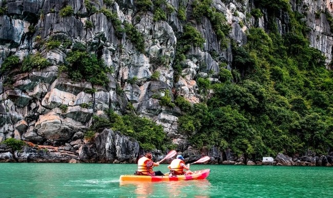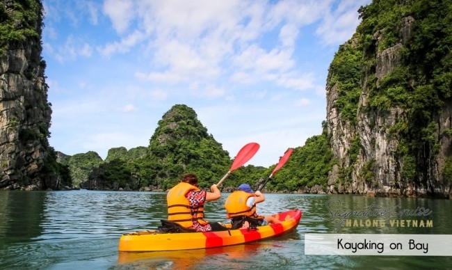 Taking a kayak to explore the bay surroundings, you will marvel at the magnificent and grand spectacle of continuous ranges of limestone karst looming in fog in the early morning. Or you can have a swim to take pleasure in the cool water of Halong Bay.