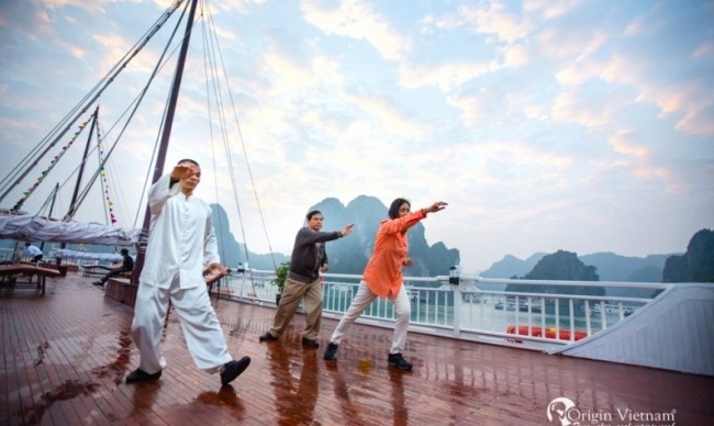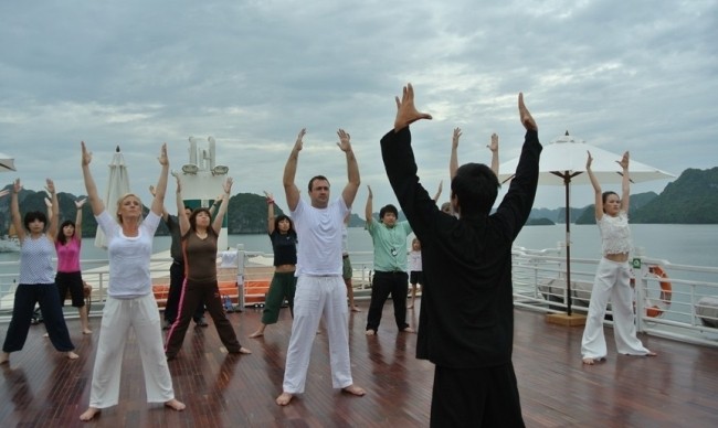 Having a healthy exercise in early morning will certainly help you relax and calm down before beginning a new day with a variety of interesting activities. This is also a hard-to-ignore opportunity to view the stunning sunrise on Halong Bay.
