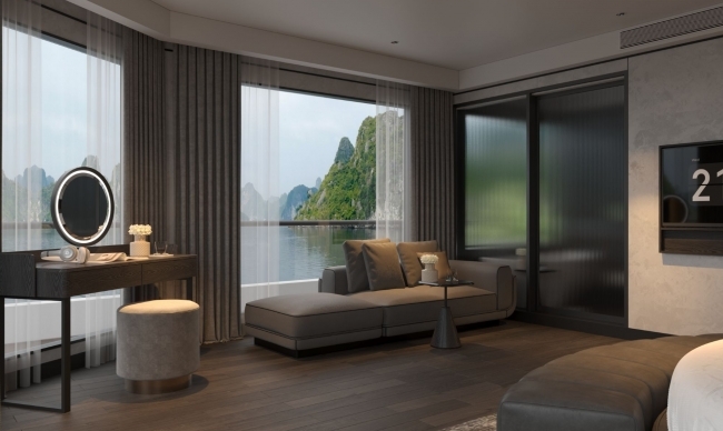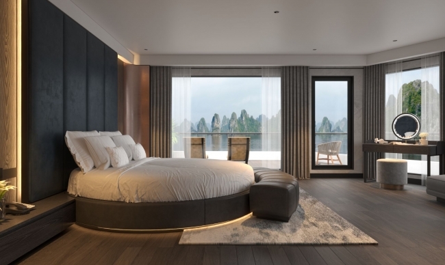 The cruise features 36 generously sized cabins, most equipped with private balconies and luxurious bathtubs. Each cabin is thoughtfully designed to maximize space, natural light, and privacy, allowing guests to relax in complete comfort while admiring the bay from their own sanctuary.